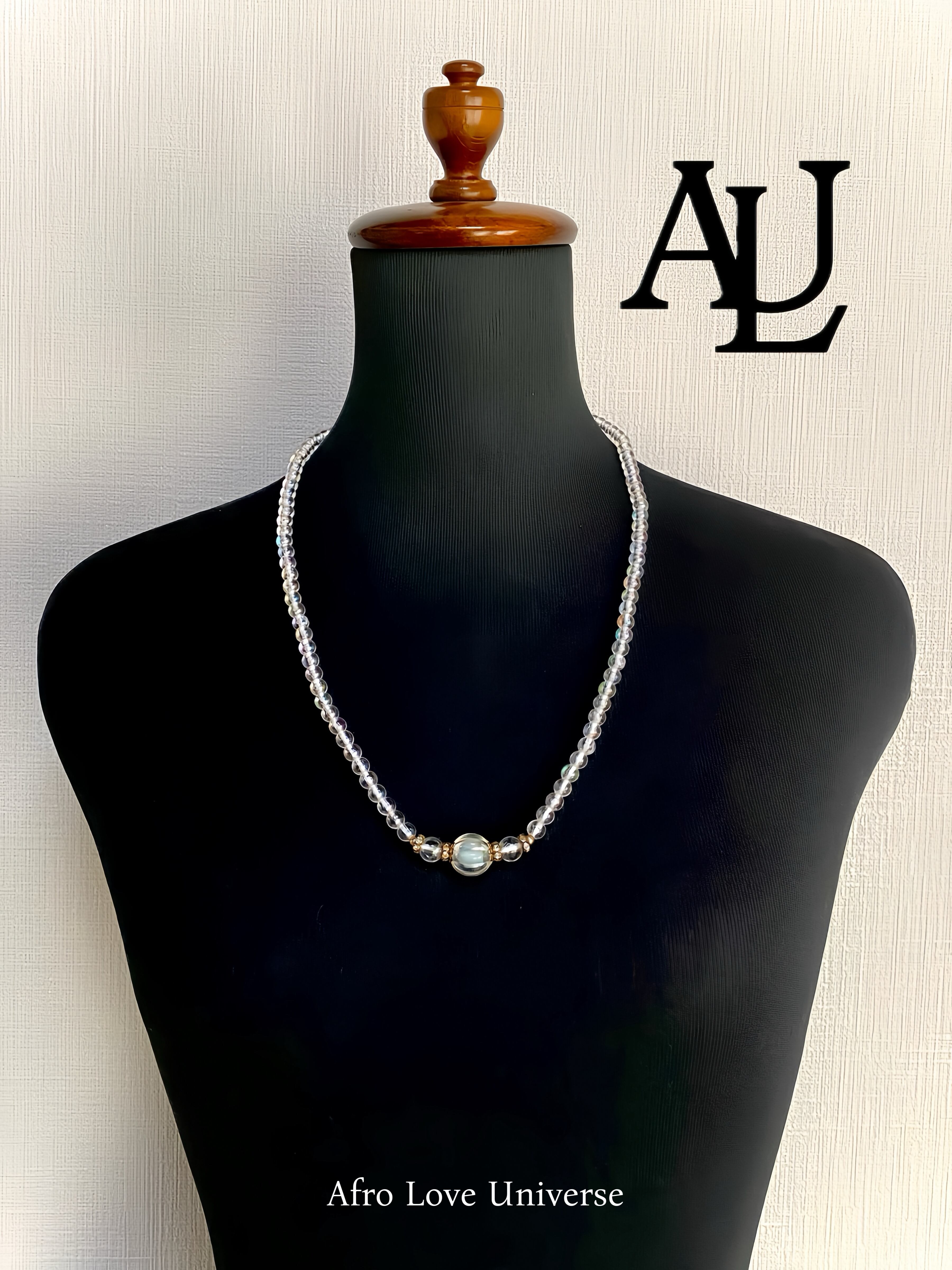 このCRYSTAL BEADS NECKLESSは、シンプルでありながらも存在感のある半透明のデザインが魅力的なネックレスです。真ん中に輝く虹色のビーズは、見た目に華やかさをプラスし、どんなブラックコーディネートにもぴったりマッチします。留め具がないため、着脱もスムーズで日常使いにも特別なシーンにも幅広くご利用いただけます。この一品を身に着けることで、シンプルな装いがぐっと引き立つこと間違いなしです!